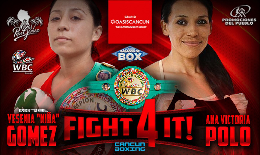 La mexiqueña Polo desafiará a la “Niña” Gómez, quien realizará la segunda defensa del cetro absoluto en la batalla coestelar de la velada “Fight 4 It!” que se escenificará en la internacional “Oasis Arena Cancún”.